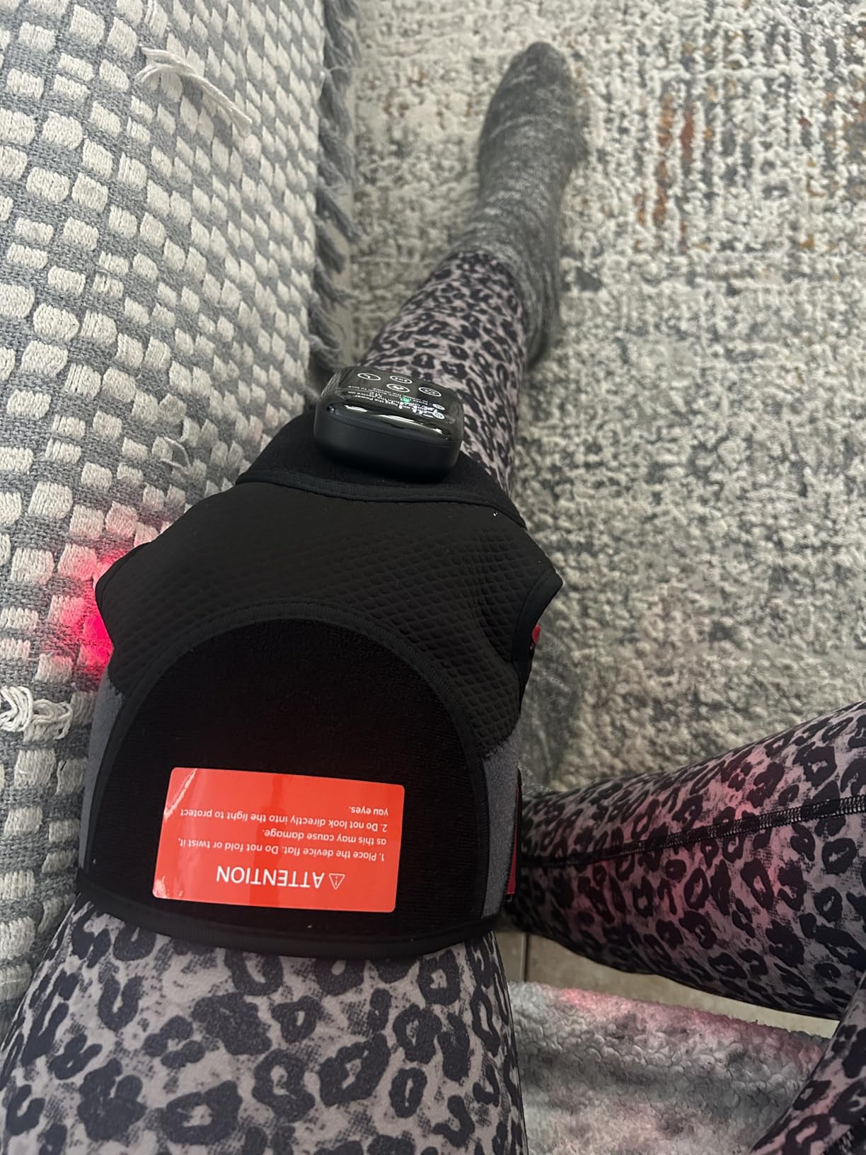 Red and near-infrared light penetrate tissues deeply, promoting muscle recovery, reducing inflammation, and improving overall knee joint health.